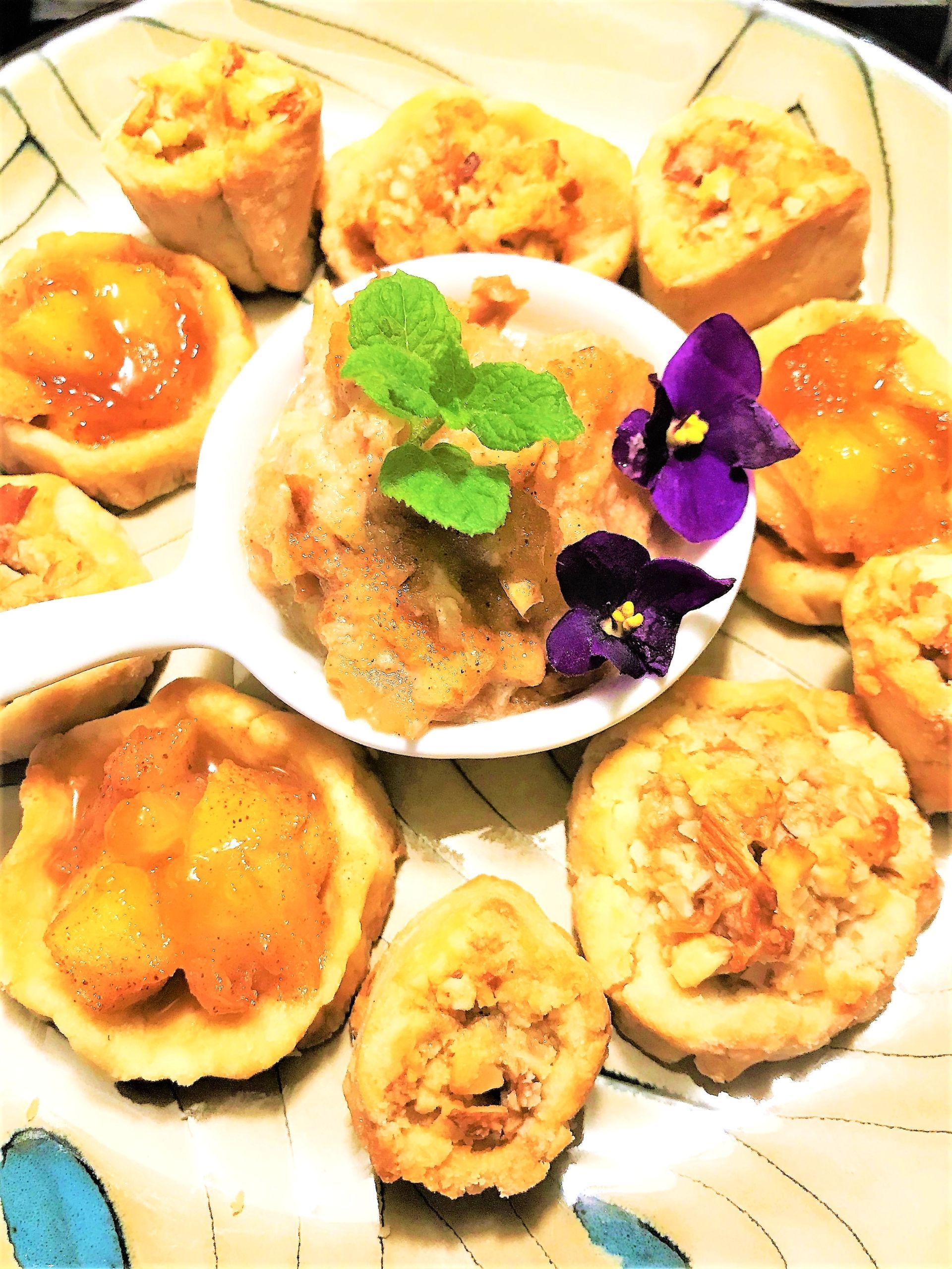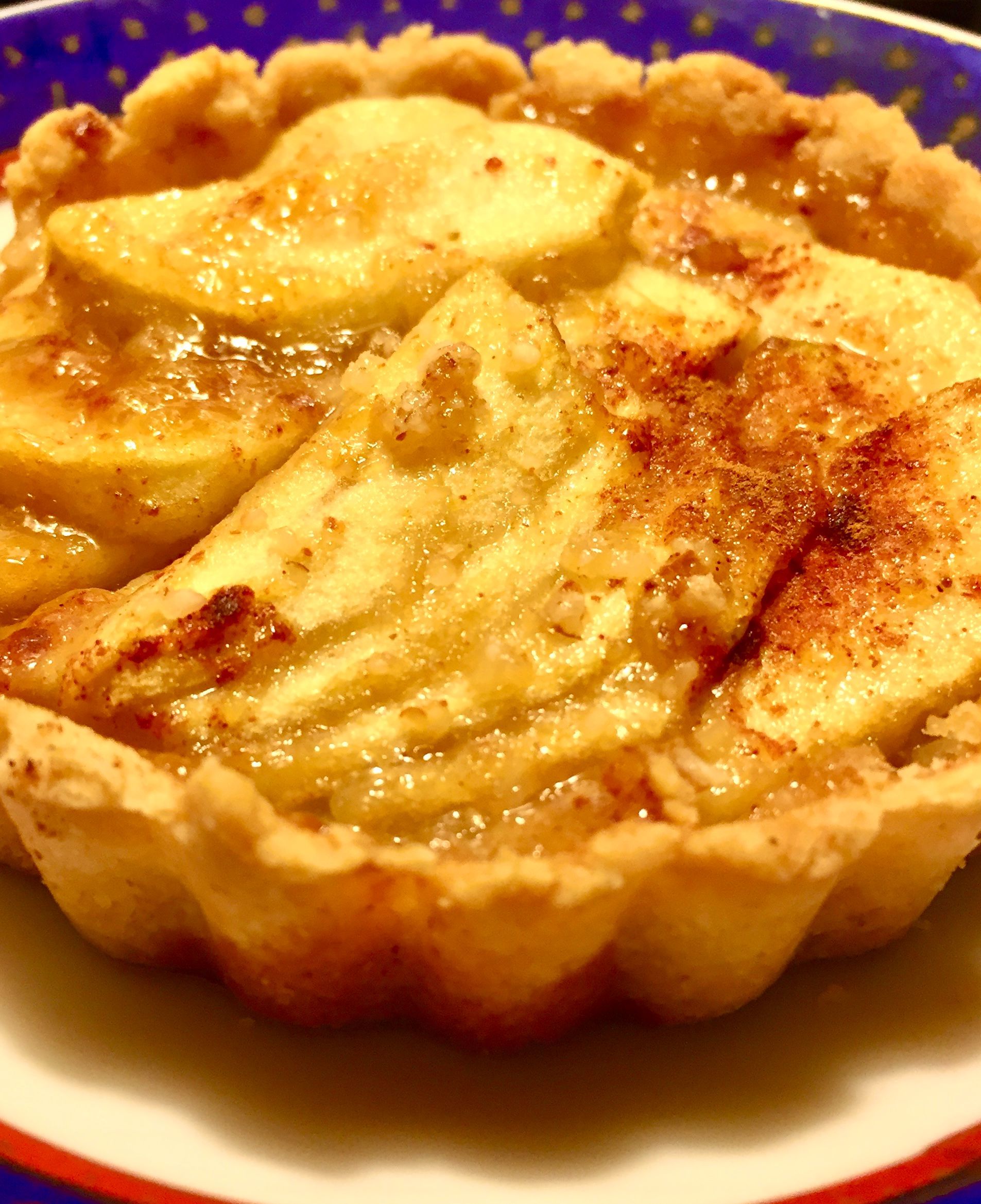 - Peel and slice apples thin half-moons. Add a little lemon juice to the apples to keep from discoloring.